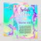 Expresa tu sincero agradecimiento con nuestras encantadoras Tarjetas de Agradecimiento, que reflejan las vibras encantadoras de nuestra fiesta de sirenas. Contra un fondo de playas bañadas por el sol y mares brillantes, estas tarjetas presentan colas de sirena pintadas a mano con acuarela en tonos de rosa, púrpura, holográfico, arcoíris, azul y verde, completas con brillo falso. Con un fondo de océano con gradiente ombre de arcoíris y burbujas de acuarela, capturan perfectamente la magia de nuestra celebración. ¡Tu presencia hizo que nuestra fiesta de sirenas fuera un éxito rotundo!
