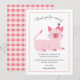 Tarjeta de agradecimiento de fiesta de cumpleaños linda para la fiesta temática de gato de tu hijo. Ilustración de un gato rosa con una sonrisa en su cara que lleva un sombrero de fiesta. El texto de arriba dice "gracias por venir!" y el texto de abajo entra en más detalle agradeciendo al amigo por asistir al evento y por el regalo que trajo. Puedes agregar el nombre de tu hijo en la parte inferior. Los textos son fácilmente editables en línea.