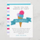 Tarjeta de agradecimiento de cumpleaños con tema de helado adorable con ilustración de un helado colorido en un cono de waffle con colores rosa, azul y lavanda. El texto dice "gracias por hacer que mi fiesta sea tan dulce". Perfecta para una fiesta de niña en verano.