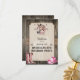 Ensilla y galopa hacia una divertida fiesta de cumpleaños con tema de paseo a caballo. Un fondo de tablones de madera sugiere el interior de un establo con un panel sujeto por correas de arpillera. El panel de color crema tiene una marca de agua de caballo. En la parte superior, un caballo se asoma a través de una herradura para agradecer a los invitados por participar en un día divertido con caballos. Un par de botas rosas y un sombrero de vaquero están colocados hacia la parte inferior de la tarjeta con adornos de estilo western que acentúan el diseño. Disponible con productos coincidentes.