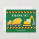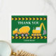 Tarjetas de agradecimiento personalizadas de vehículo de construcción geniales para un niño que ama los vehículos de construcción amarillos en negro y amarillo. Tarjeta plegada divertida de mezcladora de concreto verde y excavadora para un niño que ama los coches y camiones. Personalice con el nombre de su hijo debajo de la cinta de precaución negra y amarilla.