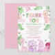 Tarjeta De Agradecimiento Fiesta de cumpleaños número uno de niña dinosaurio