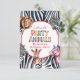 Haz que el cumpleaños de tu hijo sea una aventura salvaje con esta colorida invitación 'Llamando a todos los animales de fiesta' que incluye una divertida mezcla de animales de la jungla como un león, cebra, jirafa e hipopótamo. Con letras de colores brillantes y un borde de safari divertido, este diseño es perfecto para niños que aman los animales y las fiestas emocionantes. Personaliza con los detalles de tu celebración y prepárate para una fiesta inolvidable.