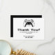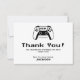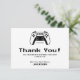 Esta tarjeta de agradecimiento para el cumpleaños de un niño gamer moderno es perfecta para una fiesta de cumpleaños con temática de videojuegos. El diseño limpio en blanco y negro presenta una gráfica de un control de juego y un texto en negrita estilo píxel. Crea una apariencia divertida y elegante que les gusta a los niños y a los padres.