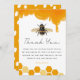 Tarjeta de agradecimiento de papel de fiesta de cumpleaños con tema de abeja linda con ilustración de un abejorro con miel goteando en la parte superior. También hay patrón de panal de abeja. El texto predeterminado agradece a los invitados por la celebración y el regalo. Personalice este producto agregando su nombre en la parte inferior. Diseño neutral en cuanto al género.