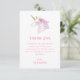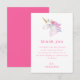 Tarjeta De Agradecimiento Fiesta de Cumpleaños Unicornio Rosa Purpura Dorado