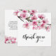 Tarjeta de agradecimiento de Despedida de Soltera moderna y minimalista con ramas de flores de cerezo rosadas en acuarela y texto de caligrafía vibrante.