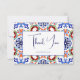 Tarjetas de agradecimiento para fiesta de despedida de soltera con baldosas azules mexicanas talavera azulejo, fuente manuscrita informal