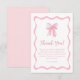 Celebre el tema de la ducha de novia "tying the knot" con esta tarjeta de agradecimiento para ducha de novia con lazo rosa ondulado personalizada. Perfecta para un tema de ducha de novia coquette, esta tarjeta elegante se integra perfectamente con las ideas de tema de ducha de novia con lazo, agregando un toque de encanto a su fiesta de lazo. Una hermosa opción para ideas de ducha de novia rosadas, captura la esencia de las ideas de ducha de novia con tema de lazo y las ideas de ducha de novia "tying the knot" con su encantador estilo de ducha de novia rosa.