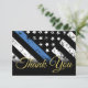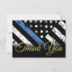 Este diseño incluye una bandera de la fuerza policial con rayas blancas y negras, y una delgada franja azul. Esta tarjeta es excelente para enviarle un mensaje de agradecimiento a todos los invitados que asistieron al fiesta de retiro del agente de la ley, el sheriff, el capitán o los jefes.