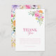 Envía agradecimientos con estilo con nuestra tarjeta de agradecimiento para fiesta de té de jardín acuarela floral despedida de soltera. Con vibrantes flores rosadas, lavanda, amarillas, naranjas y azules, esta tarjeta moderna y trendy es perfecta para una despedida de soltera en primavera o verano. Un diseño botánico único y florecido para una fiesta de té de despedida de soltera o celebración de jardín - ¡brillante, fresco e inolvidable!
