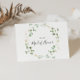 Esta tarjeta de agradecimiento de fiesta nupcial de eucalipto con confeti dorado es perfecta para una boda rústica. El diseño cuenta con follaje verde de eucalipto acuarela con confeti dorado.