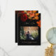 This elegant dark moody floral wedding thank you card features fine art oil painted red , yellow, orange and white flowers and a custom photo.