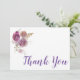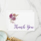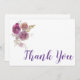 Mostrando la belleza de las flores de acuarela, esta tarjeta de agradecimiento presenta un gráfico de flor hermosa en la esquina superior izquierda sobre un fondo blanco. En la parte inferior derecha está "Gracias" escrito con belleza en texto cursivo morado. La parte posterior también tiene fuente morada sobre un fondo blanco. Hay una plantilla para personalizar su texto. ¡Personalice su tarjeta de agradecimiento hoy mismo!
