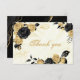 Tarjeta De Agradecimiento flor dorada y negra elegante botánica