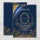 Muestra tu gratitud con esta tarjeta de agradecimiento floral azul y dorado que presenta un fondo azul rico acentuado por flores botánicas doradas lujosas. Perfecta para temas de boda clásicos o modernos, este diseño personalizable te permite personalizar tu mensaje mientras mantienes tu suite de papelería coordinada y sofisticada.
