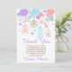 An Elegant Floral Blue and Purple Bridal Shower Thank You card to present to your friends or guests as a thoughtful memento of the occasion. The back of the card features a pink background with white polka dots . The text and background colour can be changed to suit your own requirements.