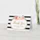 Tarjeta De Agradecimiento Floral rosa franjas negras Baby Shower Gracias