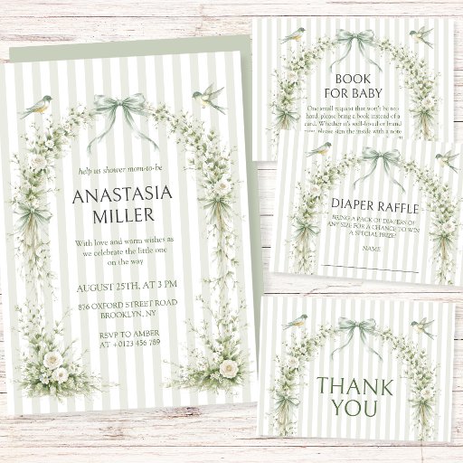 This design features sage green nesting party baby shower theme designed with soft watercolor florals, greenery, and an elegant garden aesthetic on a striped preppy background, perfect for both a nesting party or an intimate baby shower. This product can be easily personalized. If you need help with the customization of the product or need matching products kindly please contact me via Zazzle.