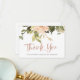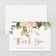 Esta encantadora tarjeta de agradecimiento para una fiesta de despedida de soltera presenta elegantes flores de peonía vintage de color melocotón, con mucho follaje, vegetación y ramas. Decoradas con una tipografía moderna sobre un simple fondo blanco. La parte posterior de la tarjeta está en blanco para que puedas agregar tu mensaje personal.