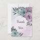 Tarjeta de agradecimiento de boda única con flores románticas polvorientas moradas y azules y hojas verdes. PARA VER MÁS PRODUCTOS COINCIDENTES haga clic en la colección anterior o contácteme.