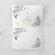 Elegante diseño de cartas con una acuarela delicada de flores azules y hojas verdes, un marco falso purpurina dorado, confeti, cruz, divisor floral, sobre fondo blanco. Utilice la herramienta Personalizar para agregar información, cambiar fuentes y colores de fuente. Para ver los artículos a juego, por favor, visite mi colección de celebraciones de bautismo/cristianismo nuevo.