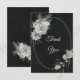Tarjeta única de agradecimiento boda con flores blancas románticas y hojas verdes sobre fondo negro. PARA OBTENER MÁS PRODUCTOS COINCIDENTES, haga clic en la colección superior o póngase en contacto conmigo.