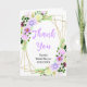 Esta hermosa y elegante tarjeta de agradecimiento para despedida de soltera presenta flores púrpuras y follaje en acuarela sobre un marco geométrico dorado. El texto combina fuentes manuscritas y serif para un estilo moderno y elegante. Es perfecto para una despedida de soltera rústica de primavera.
