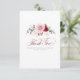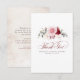 Tarjeta de agradecimiento pequeña y elegante de flores de acuarela rojas y rosadas de Borgoña para boda, despedida de soltera, fiesta de compromiso, etc.