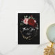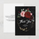 Tarjetas de agradecimiento negras elegantes con flores rojo burdeos y corona dorada