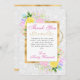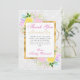 Magnífica acuarela Color rosa, amarillo y azul Flores de verano diseño floral sobre un fondo de encaje blanco floral con borde de Relieve metalizado dorado