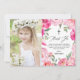 Envíe gracias a los amigos de la familia con esta elegante tarjeta de agradecimiento de la primera comunión sagrada rosa. contiene ilustraciones acuarelas de peonías rosadas, rosas y tulipanes con escritura transversal y caprichosa. Personalice agregando sus detalles y fotos. Están disponibles la invitación coincidente y otros elementos.