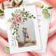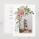 Flores de acuarela rosa rosa, arco con foto Gracias primavera y verano boda tarjeta plana. Este bonito diseño boda presenta un armazón con flores de rosa polvoriento y hojas verdes en la esquina izquierda y su foto. Los nombres están en la tipografía del guión en la parte posterior en el pin rosa k.