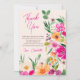Exprese su gratitud con este elegante ilustracion de flores de verano de primavera, brillante y audaz, con flor silvestre de gran tamaño y guion de pincel con ducha de novia gracias con una moderna tipografía de caligrafía con flores brillantes de neón rosa, naranja, verde y amarillo sobre el marfil beige.
