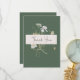 Anuncia tu boda con un toque de elegante rusticidad. Nuestra cautivadora suite de tarjetas de agradecimiento para boda presenta un vibrante arreglo de flores silvestres y helechos, meticulosamente dibujados a mano y reminiscentes de tesoros botánicos prensados. Colores ricos como beige, amarillo, crema, azul y verde salvia resaltan hermosamente contra un suave marco de fondo verde salvia. Los detalles de tu boda se muestran en un cuadro de texto de crema crujiente, lo que garantiza claridad y elegancia. Este cautivador diseño captura la esencia de un prado de flores silvestres, ofreciendo una forma única y memorable de celebrar tu historia de amor.