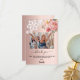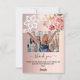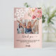 Un fondo degradado de rosa dorado, decorado con flores rosadas y encaje blanco. Gran letra a mano con florituras y el texto: Gracias. Personaliza y añade tu foto, una breve nota de agradecimiento y nombre.