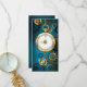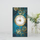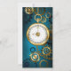fondo turquesa, texturado, de vapor punk con bronce y oro, llave de plata y reloj. Estilo Steampunk.