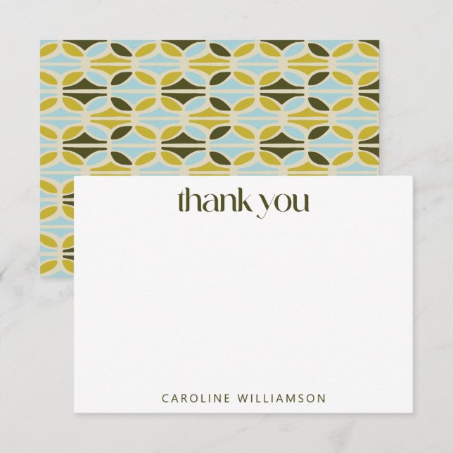 Patrón de formas pasteles abstractas personalizadas Boho en nombre personalizado azul claro y verde gracias tarjeta