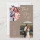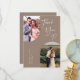 Elegante y rústico tarjeta de agradecimiento boda con un doble arca marrón con texto que dice "gracias" con corazón. Puedes tener dos fotos en la parte delantera y una en la parte trasera.