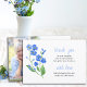 Tarjeta de agradecimiento funeral con foto conmemorativa y mensaje de agradecimiento personalizado. El diseño presenta escritura manuscrita casual y acuarelas de las flores azules olvidadas-me-not. La plantilla está configurada para que añadas una foto 'en la memoria amorosa' a la parte posterior con el nombre de tu ser querido, así como tu mensaje personalizado de agradecimiento al frente.