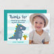 Tarjeta De Agradecimiento Foto Cute Dinosaurio Azul Kawaii Diversión Cumplea