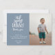 Tarjeta de agradecimiento "algún conejo" linda, en azul polvoriento. Tipografía blanca con acento de oreja de conejo y patrón de estilo de trenza de cesta dibujado a mano en la parte posterior.