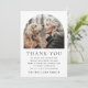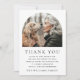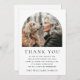 Tarjeta de agradecimiento de pésame por fallecimiento de color blanco elegante o personalizado con la foto personalizada dentro de un marco de arco y mensaje de agradecimiento personalizado debajo.