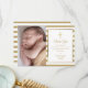 Baptismo clásico de rayas doradas o carta de agradecimiento de bautizo con una cruz de oro con un elegante borde de Relieve metalizado falso de oro que enmarca tus detalles en la tipografía moderna. Personalice con su foto y su especial bautismo o bautizo de agradecimiento mensaje en la tipografía de moda sobre este moderno y elegante diseño. Diseñado por Thisisnotme©
