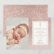 Tarjeta De Agradecimiento Foto de Bautizo con Brillo en Rosa Dorado