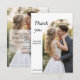 Tarjeta de agradecimiento de boda con una hermosa foto de la novia y el novio en un marco elegante. Agregue un mensaje personal de agradecimiento y su foto de boda.