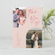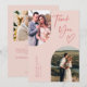 Elegante y rústico tarjeta de agradecimiento boda con un doble arco rosado con texto que dice "gracias" con corazón. Puedes tener dos fotos en la parte delantera y una en la parte trasera.