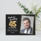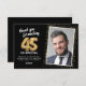Elegante fiesta de cumpleaños número 45 gracias a las tarjetas que presentan un elegante fondo negro que se puede cambiar a cualquier color, una foto del chica de cumpleaños / chico, purpurina brillante de oro, cuarenta y cinco globos de hellio de oro, y un moderno patrón de agradecimiento que es fácil de personalizar.