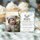 Expresa tu gratitud con esta tarjeta de agradecimiento de foto de cumpleaños con vegetación de koala lindo. Con un tierno koala rodeado de exuberante vegetación, esta tarjeta muestra hermosamente la foto de tu hijo mientras agradece a los invitados por hacer que la celebración de cumpleaños del niño sea aún más especial. Un recuerdo dulce y memorable para mostrar aprecio.