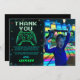 Tarjeta de agradecimiento con foto de cumpleaños con videojuego de arcade verde neón